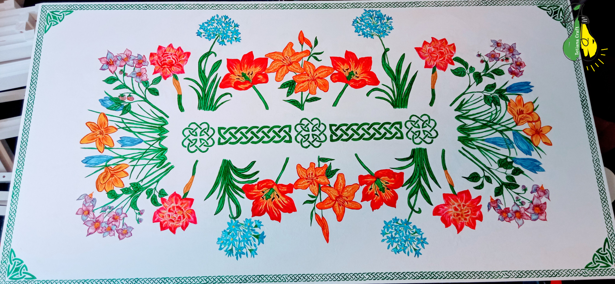 The birdhouse decor was fun. To protect the wood surface, I coated it with marine varnish. The design became more vibrant after that.