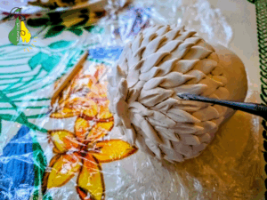 The acorn’s cap was simple to create. I formed it from small pieces of plasticine and used a special tool to make small lines.